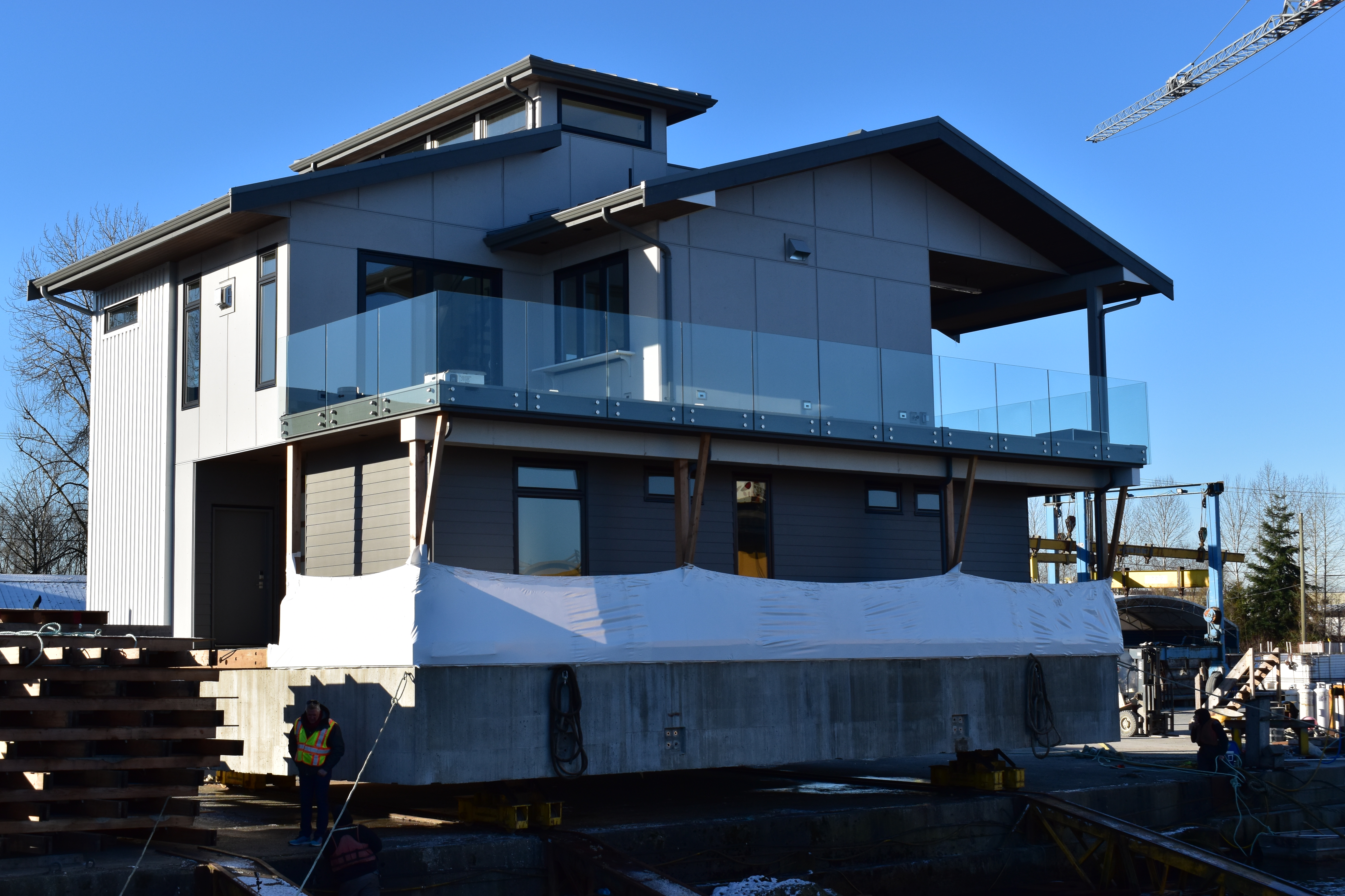 Check out these awesome images of another Pinnacle Homes floating home being launched into its final river destination!
